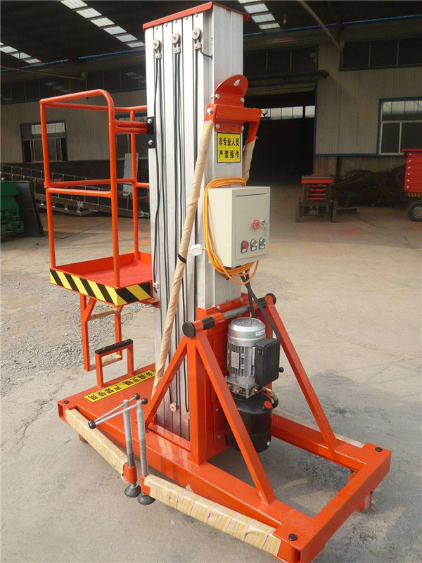 單桅桿鋁合金升降機系列強化鋁合金桅桿設計,確保操作順暢及桅桿絕不變形,結構精密緊湊,機身設計輕巧,所有液壓泵站及馬達均由歐美原裝進(jìn)口,確保質(zhì)量超著(zhù)。內置后備電源及手動(dòng)閥門(mén)設計,確保在斷電情況下可在平臺或地面使控制平臺下降,機身底座設有活動(dòng)輔助輪,提供良好的拐彎性能,以及輕易跨越一般的地面障礙,單桅桿機種設有貨車(chē)裝卸輔助裝置,可雙人進(jìn)行裝卸。起重鏈條負荷**系數大小于10:1,并設有鋼絲**保護系統,確保升降順暢**,支撐腳占地特小,安裝后平臺離墻距**是0.34米,方便作業(yè)。