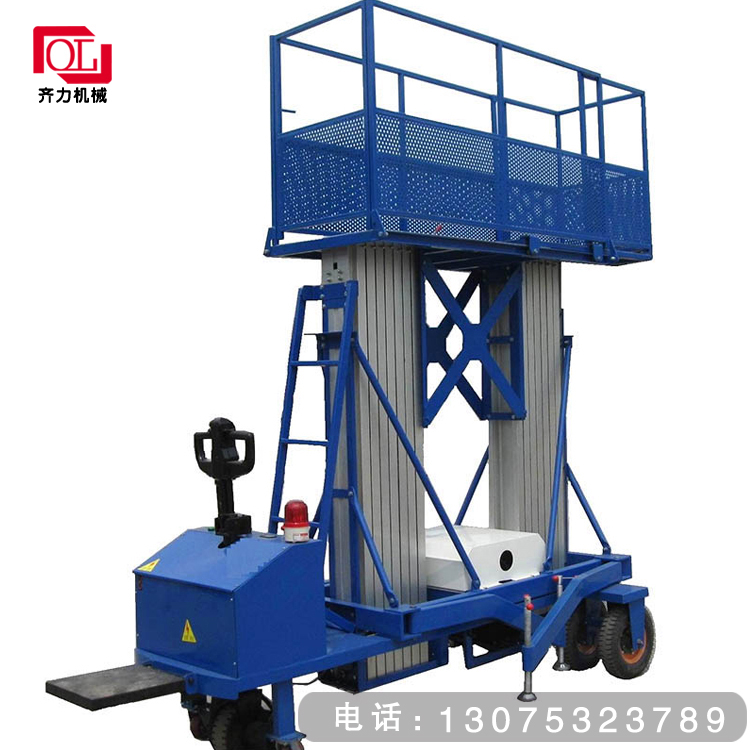 雙桅桿鋁合金升降機系列其價(jià)格比吊臂式升降臺要便宜50%,除了價(jià)格便宜外,雙人升降臺系列在狹窄通道的靈活性,使其能完成許多吊臂式升降臺不能完成的工作??蓡稳嘶螂p人操作,寬闊的平臺提供足夠的空間,便于操作人員作業(yè),擺放工具。具有*剛硬的升降桅柱系統,其特征是:高強度的鋁合金桅桿,互鎖系統,可伸縮柱及系數大于10:1的高強度的起重鏈,并設有鋼絲保護系統可用來(lái)加強力度及可靠性能,維修方便,其焊接式高強度的鋼底座適合于惡劣的工作環(huán)境。